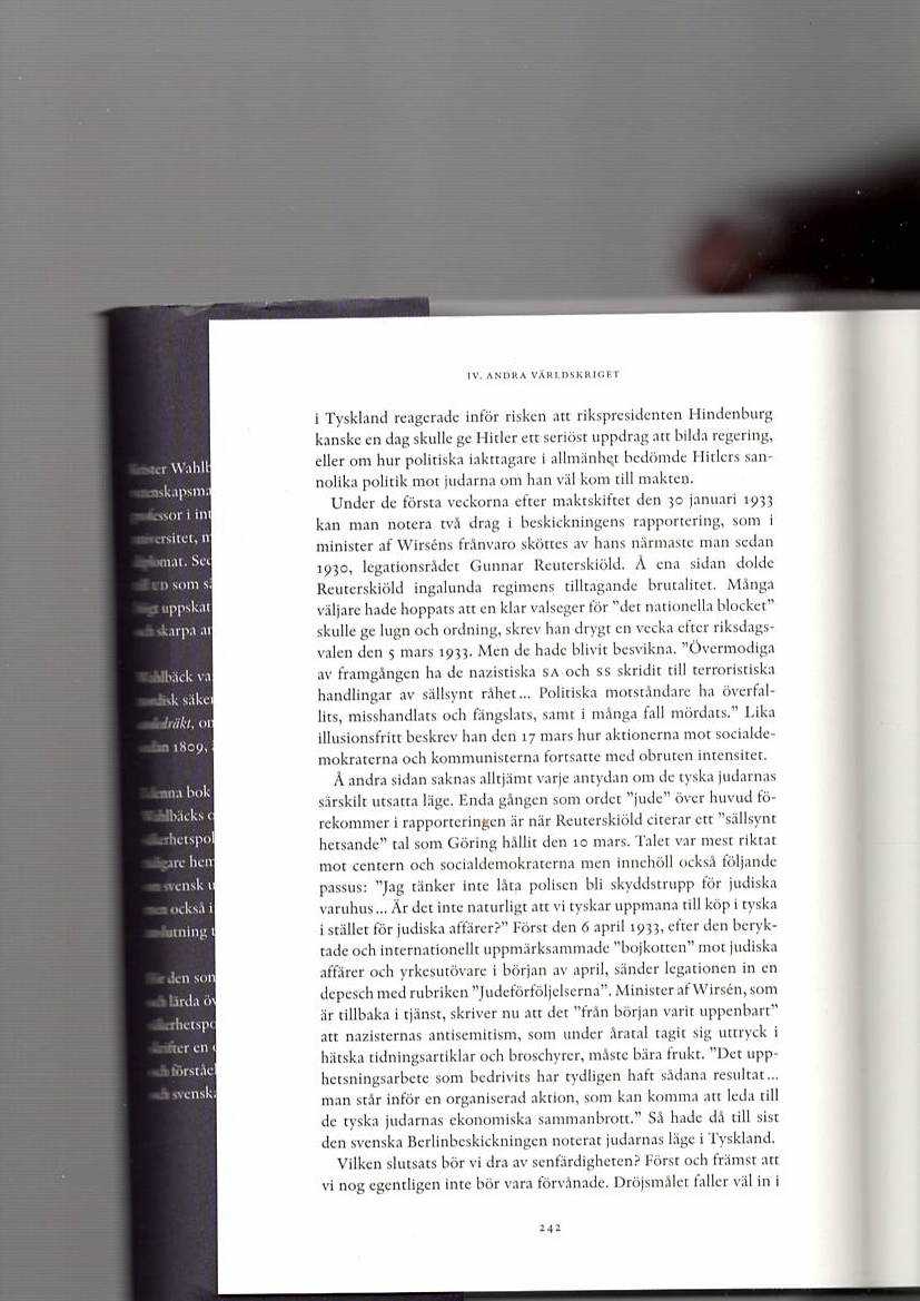 Texten ur kapitlet Sverige, Nazityskland och judeförföljelsernas inledning – några nedslag i källorna från år 1933 (sid 241-249, se nedan) återges här med tillstånd av Santérus förlag. Se länk https://santerus.se/fred-och-sakerhet-i-tider-av-forandring-bok-40.html